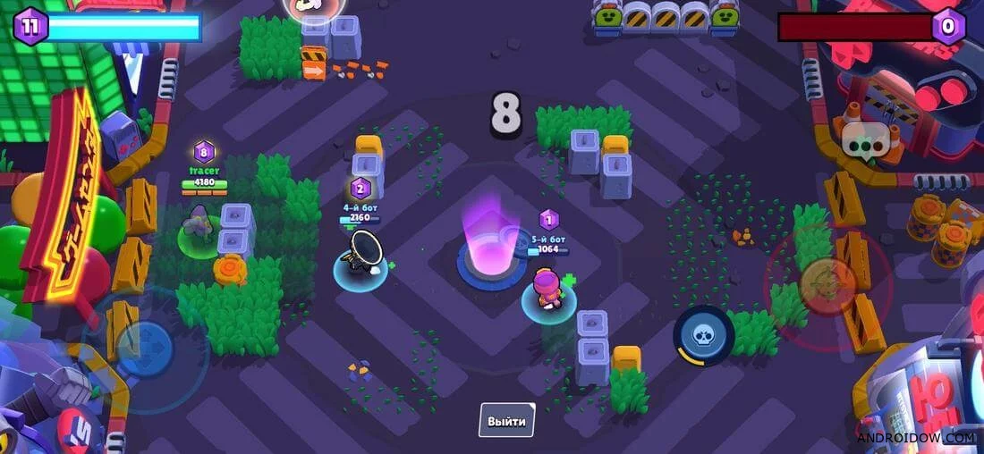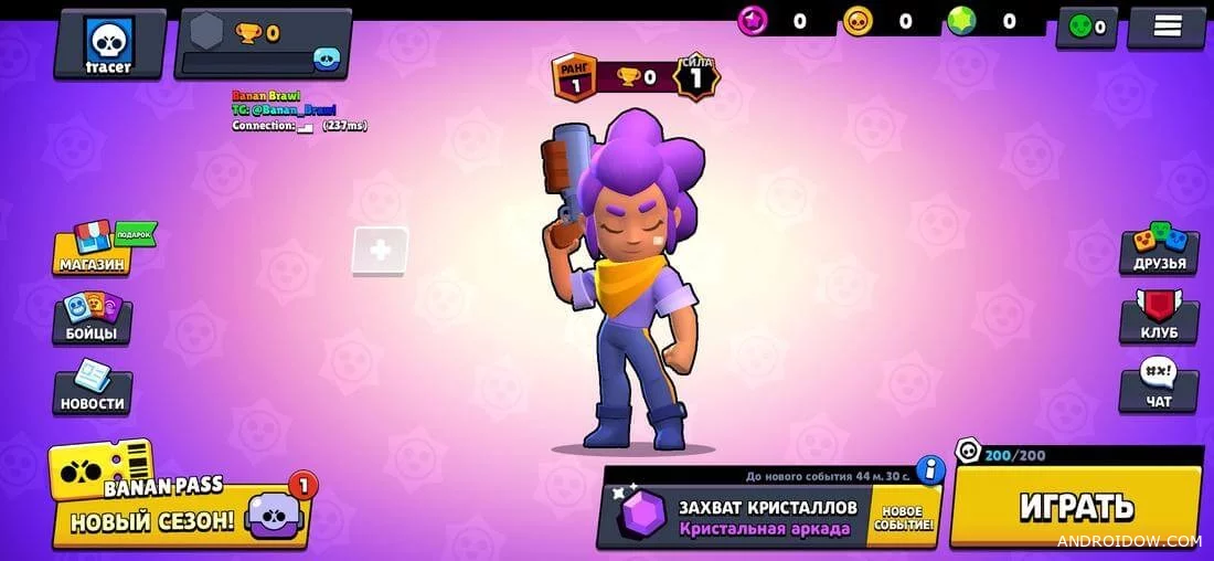 Unlike the original game, this private version lacks annoying training. Immediately after the start, you can choose one of the available modes and start playing. The game has several modes: crystal capture, clash, brolball, team events and power race. At first, only the crystal capture mode is available, the rest are unlocked as you receive trophies.