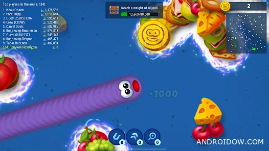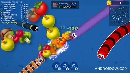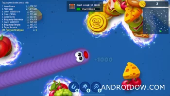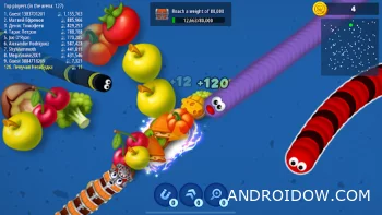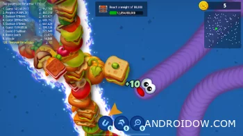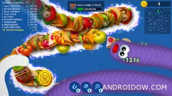 The main task is to move around the map, collect items and become bigger than the rest of the participants. The longer your worm is, the higher the chances of dominating the field and beating your opponents.