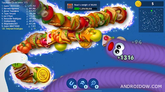 Players can expand the capabilities of their worm by purchasing upgrades in the in-game store. This helps you gain weight faster and feel more confident among other participants.