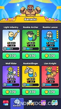 The key mechanics of the game are the control of gears that activate fighters, traps and powerful siege weapons. Every decision is a contribution to victory or defeat. You can choose when and whom to summon: from simple swordsmen to knights and even war elephants. The placement of units and the timely use of the arsenal solve everything.