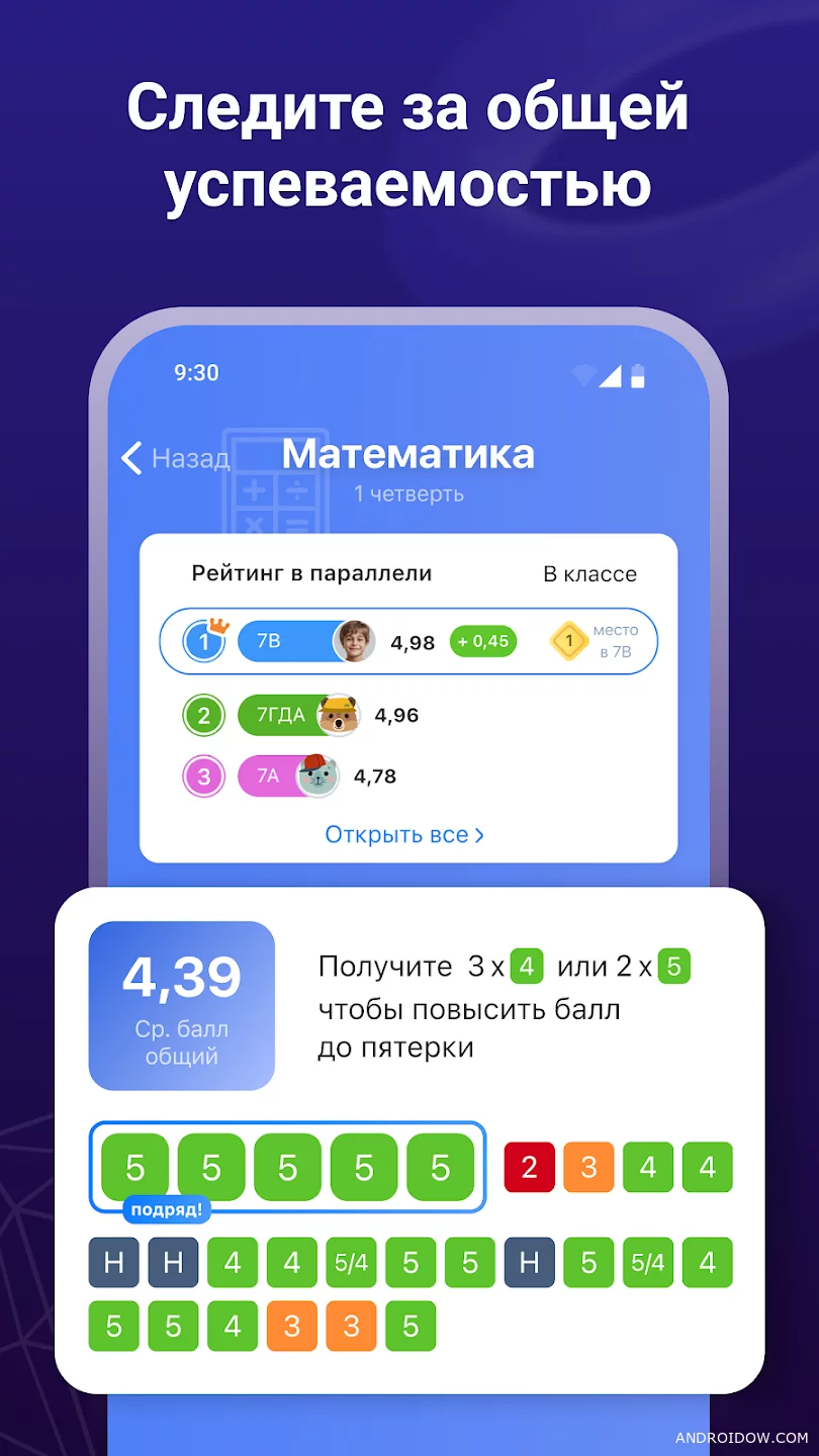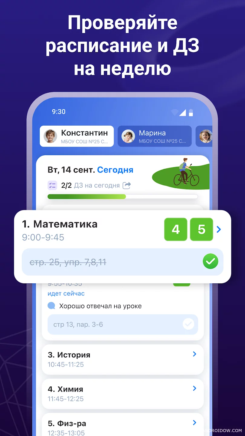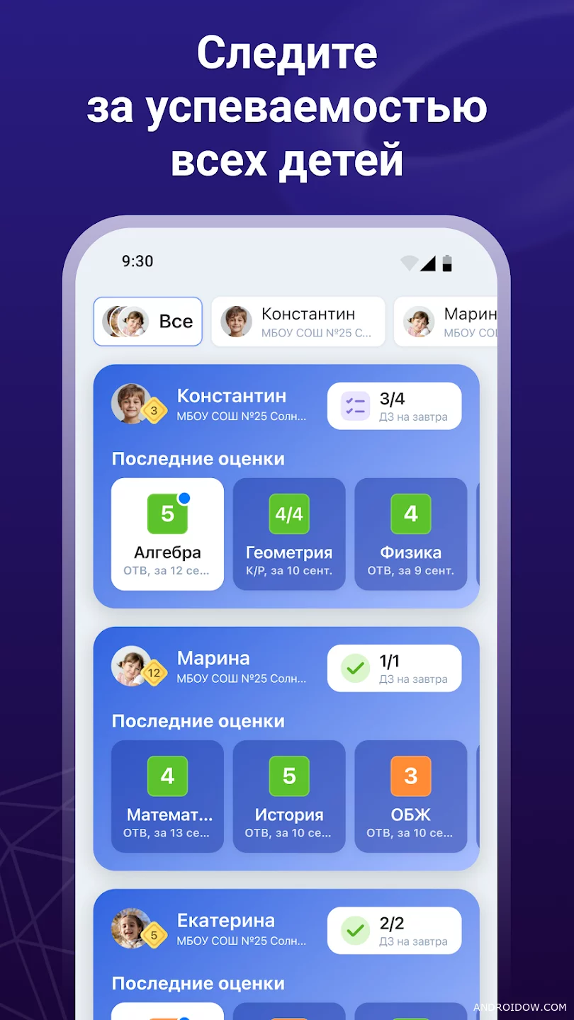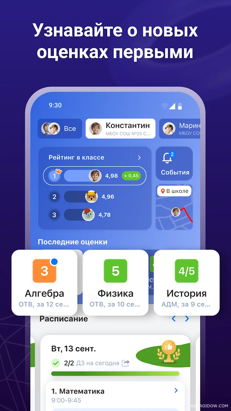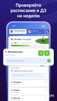 Dnevnik.ru is an application for monitoring the school process, which helps parents to always be aware of the progress and activity of the child. You get access to grades, homework, lesson schedules, and general subject statistics in a convenient and visual format.