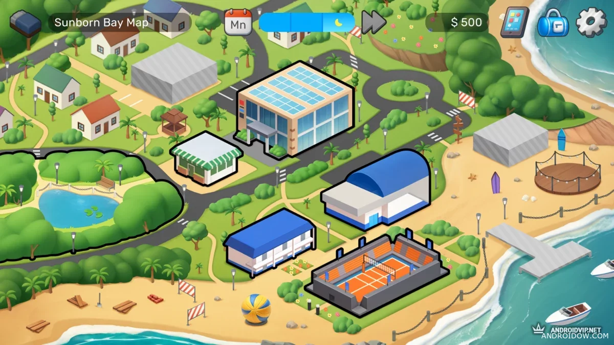 The game has a time system: events depend on the day of the week and the schedule. City exploration, quests, and various activities are also available.