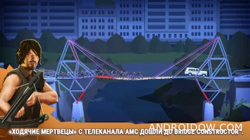 Bridge Constructor The Walking Dead - have you watched The Walking Dead TV series? So this is a real mix of the Bridge Constructor puzzle simulator with the AMC series! In the game you will be able to join a group of survivors fighting walking zombies and hostile people. Together with the heroes of the series, you can not only fight, but also build bridges, as you can do in the Bridge Constructor game on Android!