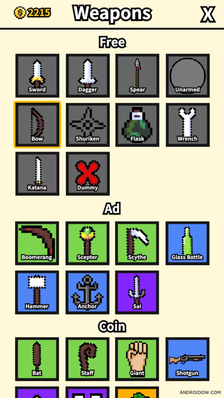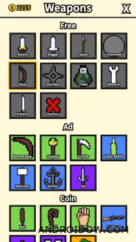 - Progress system:Weapons evolve individually — shurikens multiply when hit, and spears increase in size.