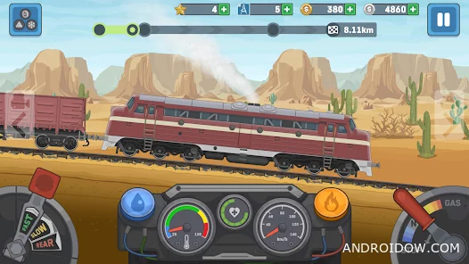 You start with a simple steam locomotive, gradually discovering diesel models, improving power, fuel efficiency and comfort. By completing missions, you discover new routes through deserts and valleys, collect resources for upgrades, and strengthen the city's economy. More than 20 types of locomotives make the game really deep and exciting.