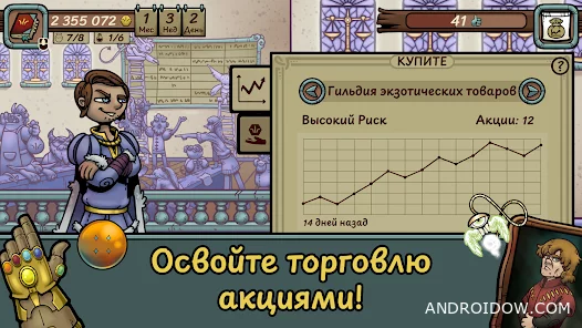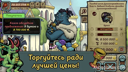 Dealer's Life Legend is one of the few games in Russian in which you can master the skills of a trader in the Bakunian Empire, where you can travel between different cities, expanding your range of items and wealth.