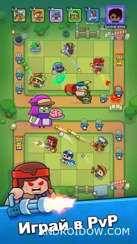 Before the start of the battle, the player selects characters from his deck and places them on the field. Battles take place automatically, but victory depends on tactics and the right choice of fighters.