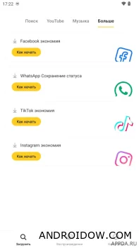 Right in the app, you can search for content on different platforms.: Facebook inst TikTok, Instagram and others — no third-party services are needed anymore. The built-in night mode will help reduce eye strain in the dark. It's not just a downloader — Snaptube can become your media hub and a versatile tool for daily use.