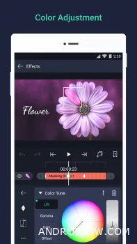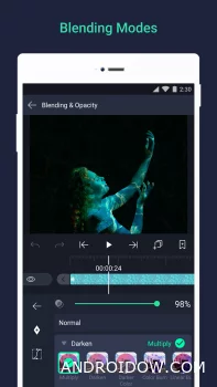 Special attention is paid to working with layers: you can combine video, images and sound, adjust their position and interaction. Tools for color correction, adding transitions, working with text and gradients are also available. This makes the app a universal solution for creating short videos, animated scenes, and visual effects.