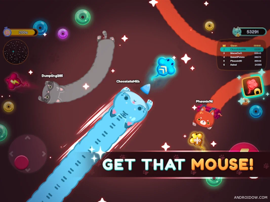 Snaky Cat — это увлекательная аркада на Android, вдохновленная slither.io, где вместо червей — милые кошки. Скачайте последнюю версию с модом на алмазы и наслаждайтесь игрой без ограничений.