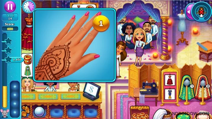 - Интересный геймплей — управляйте свадебным бутиком, помогайте клиенткам подбирать платья, украшения и макияж, выполняйте заказы и следите за атмосферой праздника.