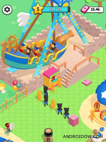 В Awesome Park: Idle Game вы начинаете с небольшого парка и шаг за шагом превращаете его в гигантский тематический центр развлечений. Добавляйте новые аттракционы, такие как американские горки, колесо обозрения и викингские корабли. Улучшайте их, чтобы сделать их более привлекательными для гостей и увеличить доход. Благодаря модификации «много денег», процесс развития становится быстрым и беззаботным, позволяя сосредоточиться на создании уникального парка.