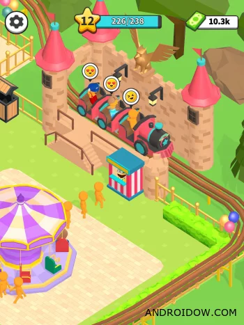 - Разнообразие аттракционов: улучшайте и кастомизируйте американские горки, колесо обозрения и другие аттракционы, создавая уникальный парк.