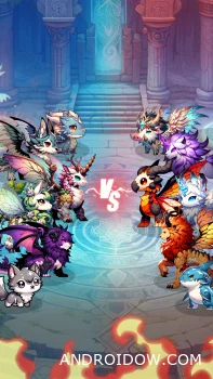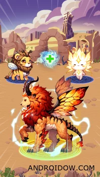 - Система слияний: Комбинируйте 7 животных и 5 стихий для создания уникальных бойцов.