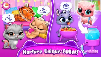 - Интерактивные мини-игры: кормление, купание, игры перед сном;