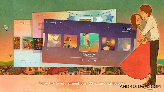 Оригинальная музыка Puuung, включающая фортепиано и классическую гитару, создаёт атмосферу, погружая вас в прекрасную историю с анимационными клипами для каждой главы. Вы сможете наслаждаться приятным OST без подключения к сети, состоящим из мелодий фортепиано и акустической гитары.
