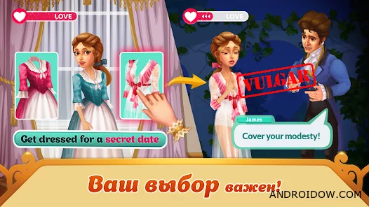 Storyngton Hall подойдёт тем, кто любит спокойные головоломки с сюжетом. Можно скачать APK на Android и пройти путь от разрушенного дома до роскошного особняка, участвуя в светской жизни и развивая историю.