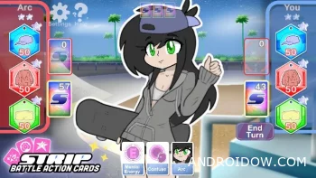 STRIP Battle Action Cards – азартная карточная стратегия с элементами ролевого развития от студии ArcanePengi. В этой уникальной игре главный герой стремится стать мастером карточных игр не ради славы или денег, а ради возможности раздеть своих соперников. Вам предстоит бороться за право остаться в одежде, побеждая противников и разблокируя новые карты для еще более сложных сражений.