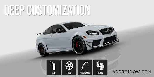 Игрок участвует в разных режимах: классические гонки, дрифт-заезды и соревнования с реальными соперниками. Управление можно настроить под себя — кнопки или наклоны устройства.