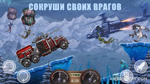 В игре представлены разные локации: пустыни, леса, заснеженные регионы и разрушенные города. Каждая из них наполнена препятствиями и опасностями, которые усложняют продвижение. По мере прохождения игрок собирает монеты и полезные ресурсы, которые можно потратить на улучшение автомобиля.