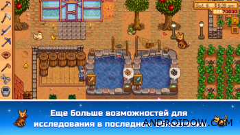 Stardew Valley - это настоящий ХИТ среди ролевых игр в которой вы окунете в фермерское дело и жизнь в деревне - постройте ферму и познакомитесь подружкой, женитесь и заведите детей, а также ухаживайте за своей фермой, а в частности за животными и огородом с растениями!