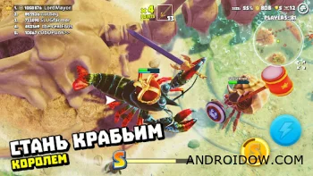 King of Crabs - прикольная многопользовательская игра в которой вы будете управлять крабами! Вы можете выбирать различных крабов, а также вы можете играть до 100 игроков одновременно с другими игроками игры King of Crabs на Андроид. В игре вы сможете объединяться с другими игроками и прокачивать своих крабов вместе! Станьте настоящем королем крабов и дайте отпор всем своим врагам!