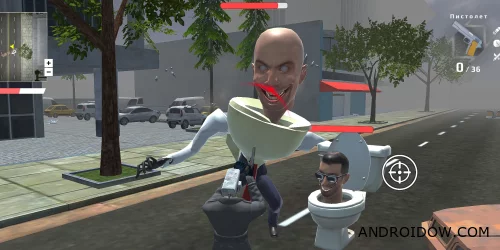 Главные фишки игры заключаться в полном открытом мире и свободном перемещением по нему, вы можете свободно гулять по городу, находить оружие, патроны и аптечки, а также встречать различных Скибиди Туалетных монстров и стрелять в них, чтобы поражать монстров достаточно навести прицел в сторону них!