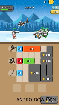 Combo Clash – это динамичная игра, сочетающая элементы защиты базы и idle-геймплея. Главная механика заключается в комбинировании оружия на сетке, что позволяет повышать его огневую мощь и эффективно справляться с волнами врагов. Игрокам предстоит пройти через разные эпохи – от доисторических времен до футуристических сражений, что делает игровой процесс разнообразным и захватывающим.