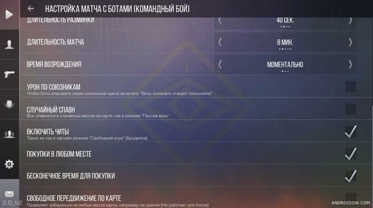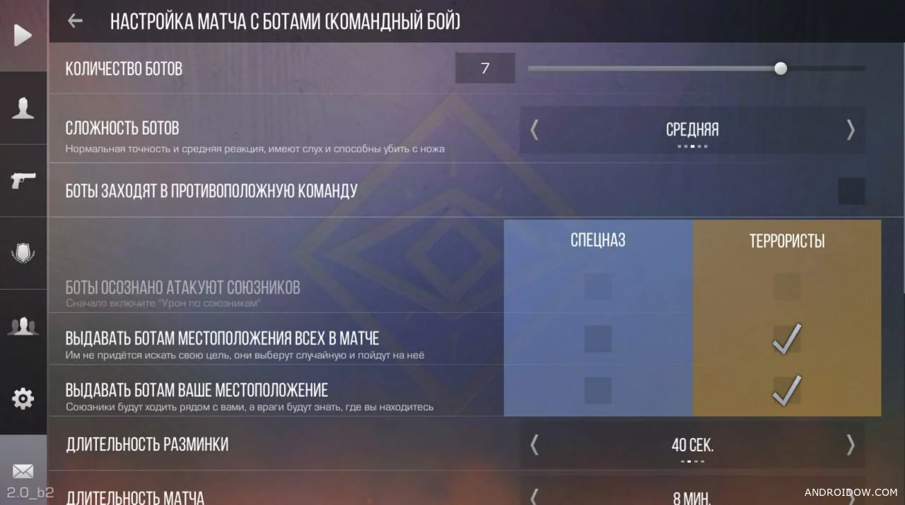 Боты не будут требовать подключение к интернету и с ними вы сможете играть даже тогда, когда все сервера буду лежать (недоступны). С ботами вы сможете тренироваться, прокачивать АИМ и просто убивать свободное время!