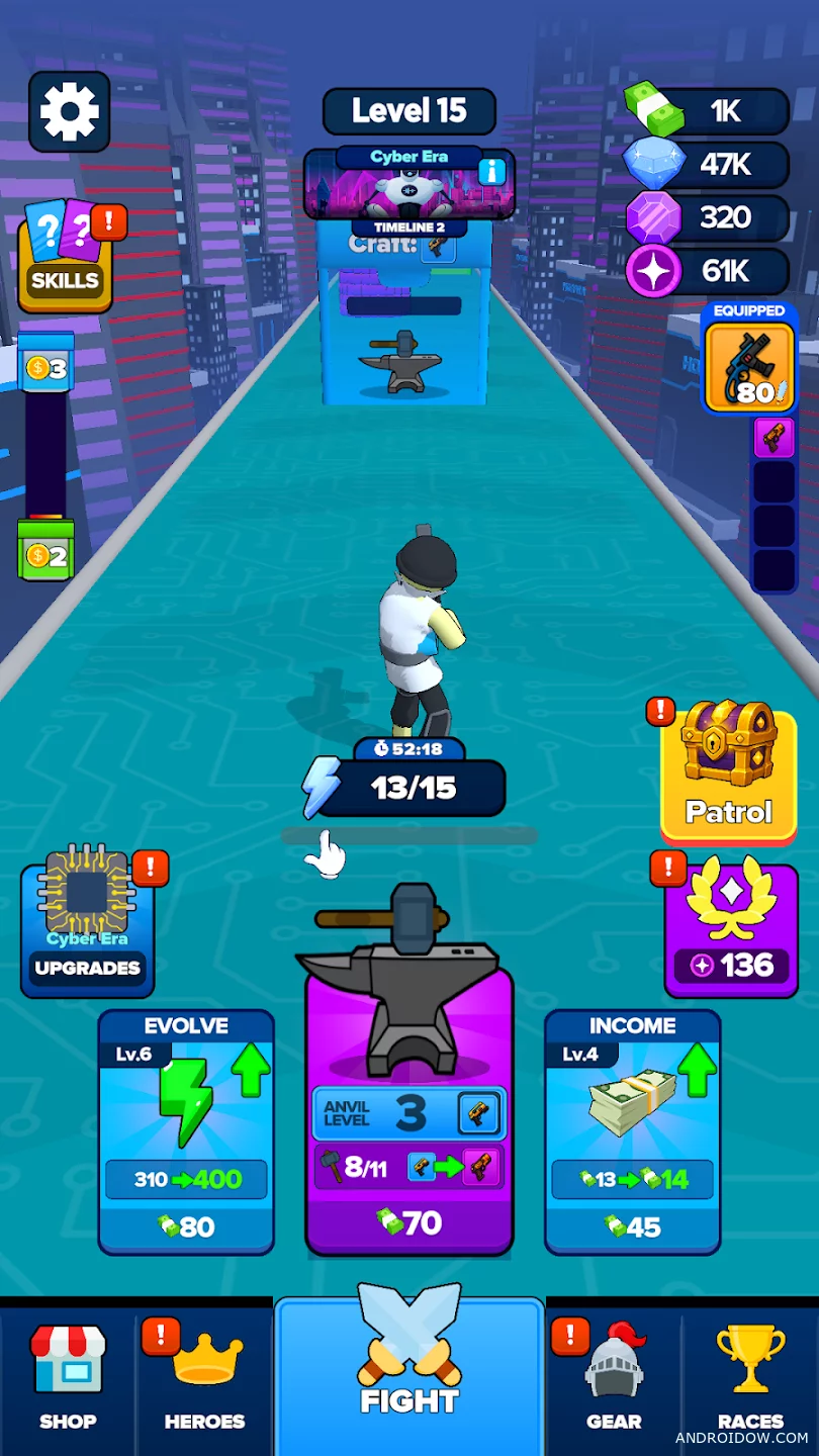 Age Breakers 1.5 — динамичный аркадный раннер от Rollic Games, где каждое прохождение — это прыжок через эпохи: от каменного века до футуристического будущего. Вас ждут яркие локации, аутентичные декорации и быстрый экшен: уклоняйся, прыгай, собирай ресурсы и веди армию юнитов навстречу бесчисленным боссам. Если любишь стильные пробежки с прокачкой — Age Breakers на Андроид точно в топе игр для фана.