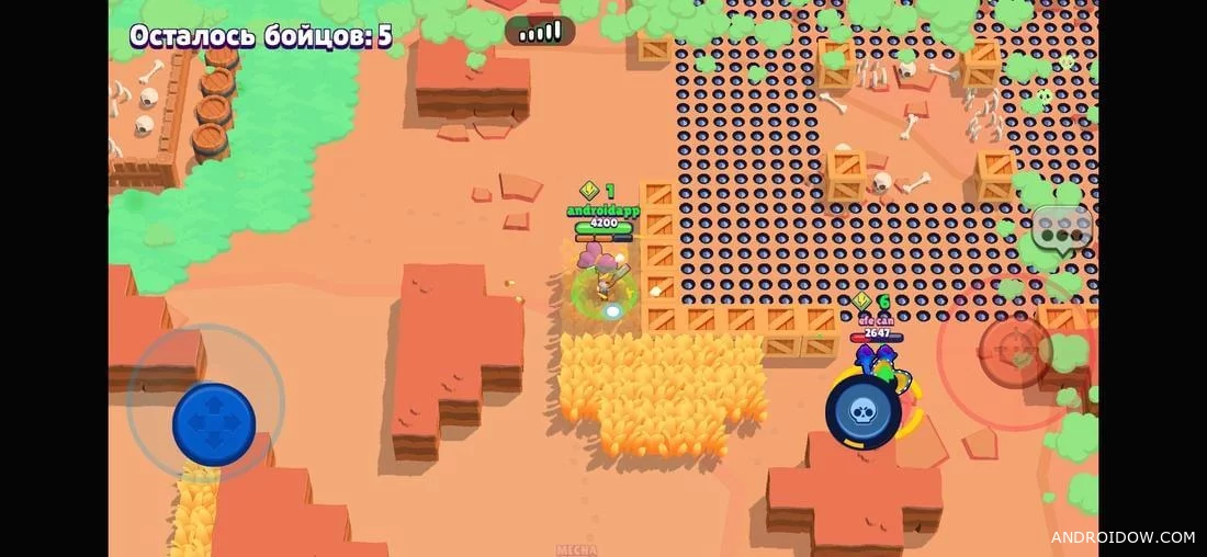 - Регулярные обновления — добавляются новые бойцы, карты и скины, как в оригинальной версии Brawl Stars.