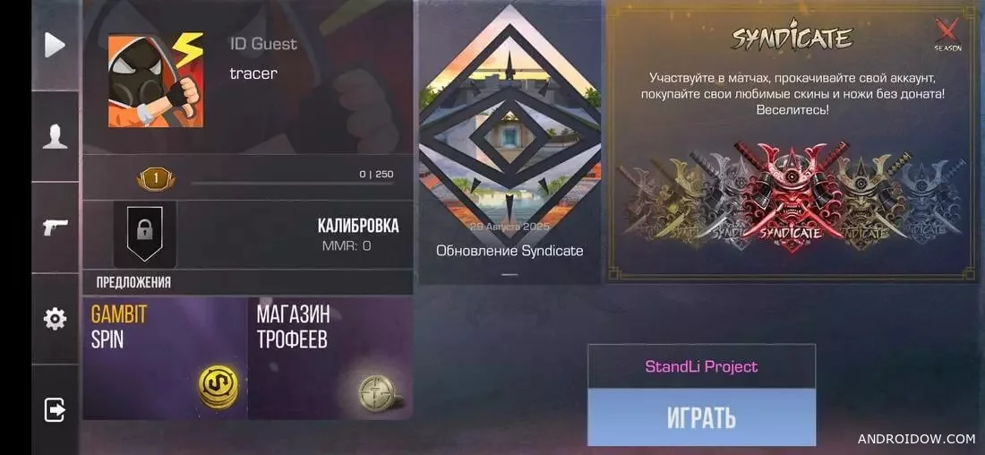 StandLi Project представляет собой качественный приватный сервер для Standoff 2, который предлагает игрокам переработанный интерфейс, офлайн-рынок и магазин трофеев из коллекции Syndicate.