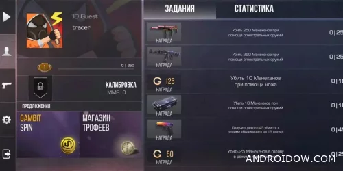 Заработать внутриигровую валюту (голду) можно несколькими способами: на тренировочном полигоне, выполняя задания, проходя карты на скорость или используя промокоды от разработчиков. Для получения приветственного подарка, включающего 500 голды и три крутых скина на оружие, достаточно ввести промокод «Syndicate».