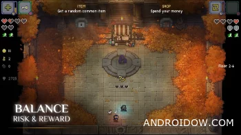 Каждый забег генерируется случайно, а игроку доступно множество предметов и комбинаций. Можно создавать мощные билды, но для этого придётся рисковать и экспериментировать.