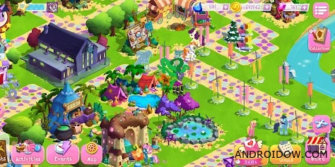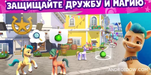 - Исследуйте знаменитые локации из мультсериала, такие как Кристальная Империя, Кантерлот и Ферма Сладкое Яблоко.