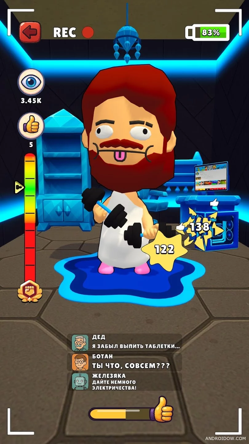 Чтобы стать самым популярным блогером, тренируйте скорость реакции. Ваша цель — нажимать на экран, когда отметка находится на зеленой зоне шкалы. С каждым разом скорость движения отметки будет увеличиваться, а при промахе она будет сбрасываться до начальной.