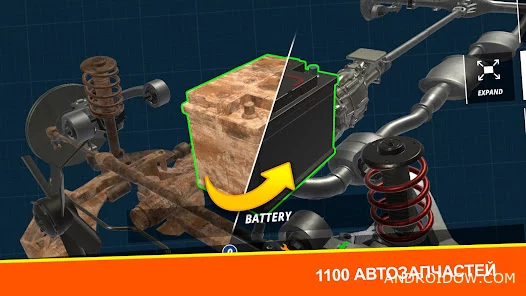 - Богатая система деталей: свыше 1100 автозапчастей, включая полные наборы шасси и двигателей — от R4 до V8.