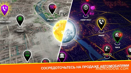 - Полный цикл автомеханики: принимайте заказы, ремонтируйте, тюнингуйте и продавайте автомобили, расширяя свою коллекцию.