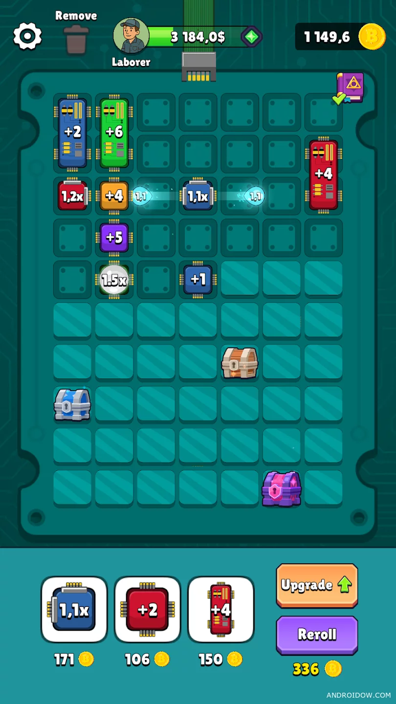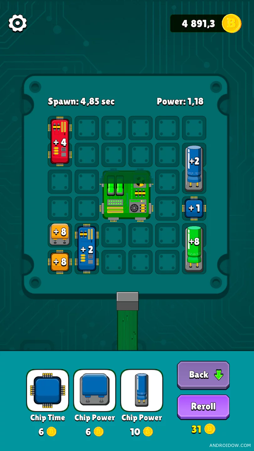 - Размещение чипов: стройте свою микросхему, добавляя новые элементы для максимальной эффективности.