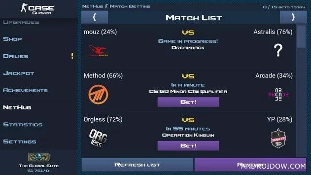 Если вы любите азарт и атмосферу CS:GO, но хотите просто расслабиться и проверить свою удачу — Case Clicker идеально подойдёт. Здесь вы сможете наслаждаться открытием кейсов, редкими находками и звуками “выпадения” без давления и затрат. Скачайте взломанную версию Case Clicker на Андроид и создайте собственную коллекцию легендарных скинов прямо сейчас!