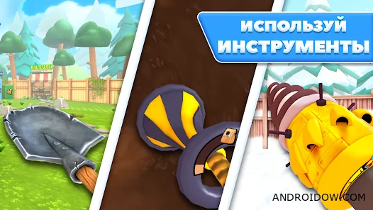 В вашем распоряжение будет множество инструментов - это буры, лопаты, ломы, бомбы. По мере продвижения в глубь земли вы будете находить драгоценные металлы, ценные предметы и сокровища. Играя в игру без остановки вы сможете докопаться наверное до Китая))