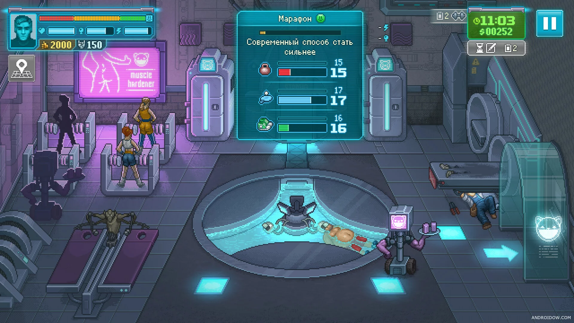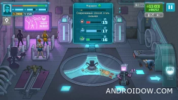 Punch Club 2: Fast Forward на Android — это стильный симулятор бойца, где управление карьерой сочетается с драками, прокачкой и сюжетной драмой в киберпанковском мире. Вы начинаете как обычный парень без имени и постепенно превращаетесь в легенду подпольных арен города будущего.