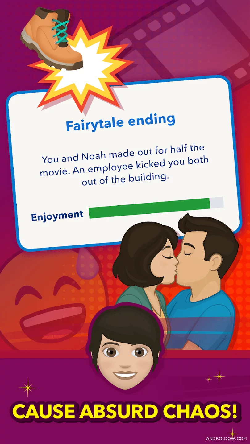 По мере прохождения меняются ключевые показатели героя, такие как здоровье, счастье, интеллект и внешний вид. Любое действие может привести к неожиданным последствиям, формируя уникальную историю жизни.