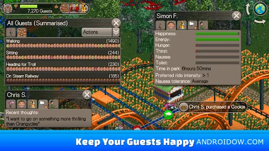 Игра полностью сохраняет очарование классики: изометрическая графика, фирменный стиль аттракционов и знакомая механика понравится как ветеранам серии, так и новичкам. При этом интерфейс адаптирован под современные устройства, а управление стало гораздо удобнее.