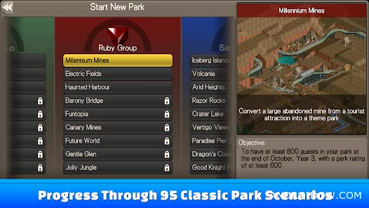 Создавайте собственный парк с нуля: проектируйте аттракционы, продумывайте маршруты передвижения, украшайте территории и управляйте финансами. В вашем распоряжении десятки сценариев разной сложности, множество биомов и уникальных локаций. Главное — правильно сочетать креативность и стратегию, чтобы парк стал прибыльным и популярным.