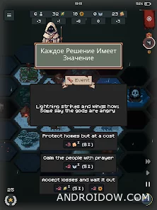 В основе игры лежит контроль над едой, золотом и развитием деревни. Каждый ход требует продуманного выбора: куда направить людей, что строить и чем рисковать ради будущего поселения. Помимо экономики, важную роль играют моральные дилеммы и случайные испытания.