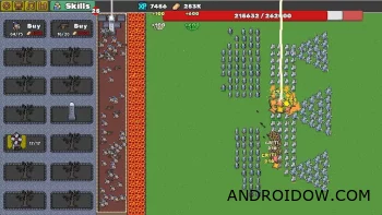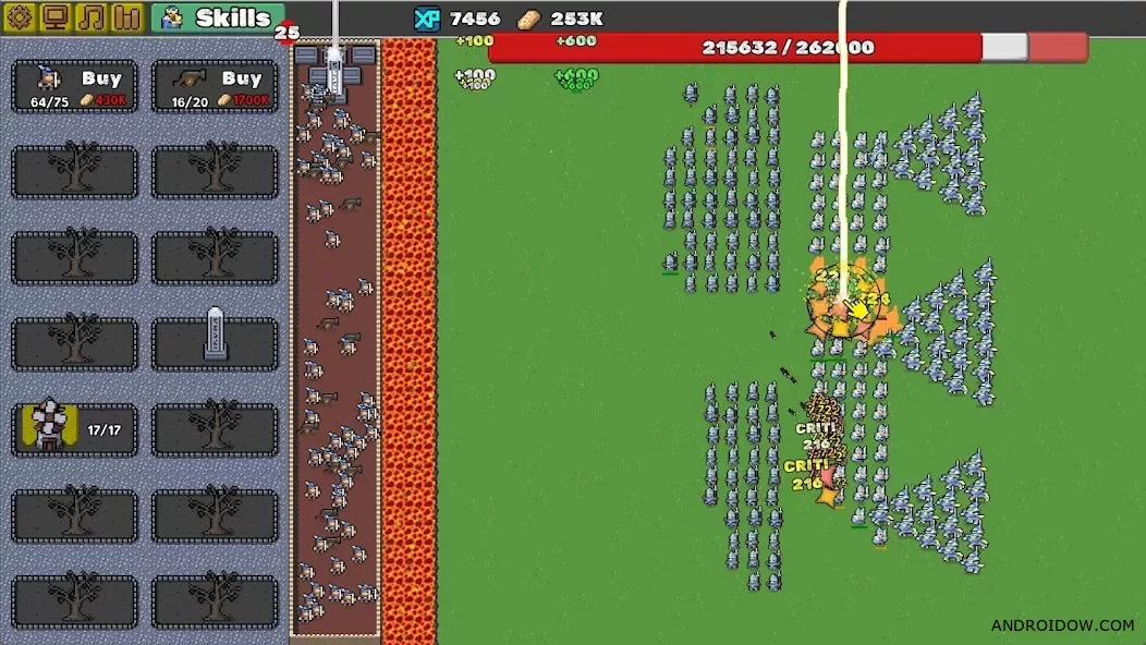 Враги идут к вашей базе, но мощный поток лавы уничтожает их ещё на подходе. Ваша задача — не выжить любой ценой, а постепенно усиливать оборону и ускорять прогресс.