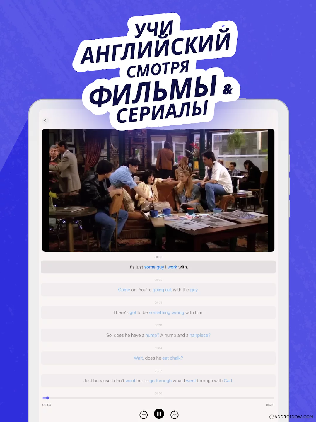 Wordy - Learn Languages — это образовательный проект, позволяющий пользователям изучать иностранные языки через фрагменты фильмов и сериалов. Платформа поддерживает более 20 языков, что делает её популярной среди тех, кто предпочитает самостоятельное обучение. Функция распознавания речи и одновременного отображения субтитров упрощает и повышает точность восприятия материала. База данных содержит множество уроков, а возможность загрузки дополнительных материалов от пользователей обеспечивает индивидуальный подход к обучению.