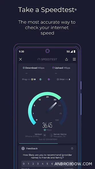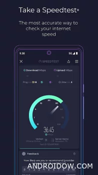 Speedtest от Ookla — это удобное приложение для проверки скорости интернета, которое позволяет быстро узнать качество подключения на твоём устройстве. Ты можешь за несколько секунд измерить скорость загрузки, отдачи и пинг, получая точные данные о работе сети.