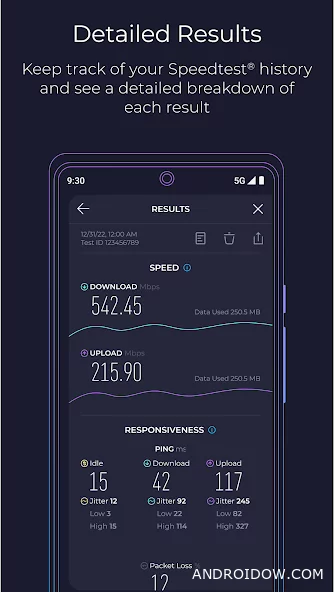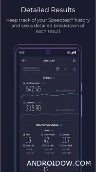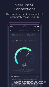 Приложение даёт возможность выбирать серверы в разных странах, чтобы более точно оценить соединение, а также анализировать стабильность интернета и уровень сигнала. Все результаты отображаются в наглядной форме, что помогает быстро понять текущее состояние сети.